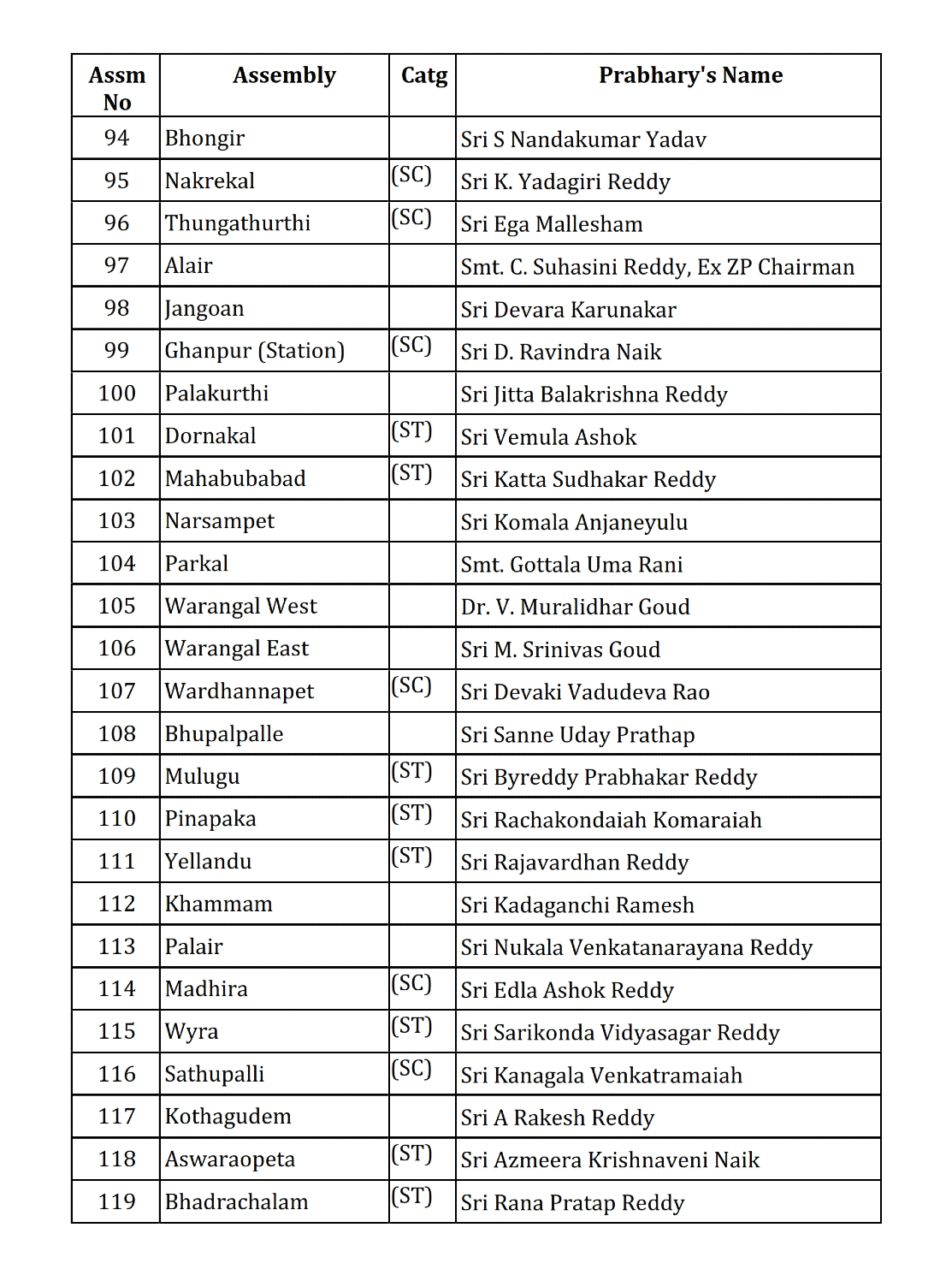 119 అసెంబ్లీ నియోజ‌క‌వ‌ర్గాల‌కు బీజేపీ ఇంచార్జ్ లు వీళ్ళే:
