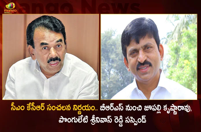 బీఆర్ఎస్ పార్టీ అధినేత, తెలంగాణ ముఖ్యమంత్రి కె. చంద్రశేఖర్ రావు సంచలన నిర్ణయం తీసుకున్నారు. మాజీ మంత్రి జూపల్లి కృష్ణారావు, మాజీ ఎంపీ పొంగులేటి శ్రీనివాసరెడ్డిలను పార్టీ నుంచి సస్పెండ్ చేశారు. ఈ మేరకు బీఆర్ఎస్ కేంద్ర కార్యాలయం సోమవారం ప్రకటించింది. గత కొంతకాలంగా ఈ ఇరువురు నేతలు పార్టీ వ్యతిరేక కార్యకలాపాలకు పాల్పడుతుండటంతో.. పార్టీ క్రమశిక్షణ ఉల్లంఘించినందుకు వారిపై వేటు వేస్తున్నట్లు ప్రకటించింది. కాగా ఖమ్మం మాజీ ఎంపీ పొంగులేటి కొంత కాలంగా పార్టీకి దూరంగా ఉంటున్నారు. బీఆర్ఎస్ పార్టీకి వ్యతిరేకంగా ఉమ్మడి ఖమ్మంలో వరుసగా ఆత్మీయ సమ్మేళనాలు నిర్వహిస్తున్నారు. ఈ క్రమంలో ఆదివారం కొత్తగూడెంలో ఆత్మీయ సమ్మేళనం నిర్వహించారు. ఈ కార్యక్రమానికి ముఖ్య అతిథిగా మాజీ మంత్రి జూపల్లి కృష్ణారావు హాజరయ్యారు.