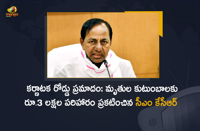 కర్నాటక రాష్ట్రంలోని కలబురగి బస్సు ప్రమాదంలో మరణించిన వారికి ఒక్కొక్కరికి రూ.3 లక్షలు, గాయపడిన వారికి ఒక్కొక్కరికి రూ. 50 వేల పరిహారాన్ని ముఖ్యమంత్రి కె.చంద్రశేఖర్ రావు ప్రకటించారు. ఈ మేరకు చర్యలు తీసుకోవాలని ప్రభుత్వ ప్రధాన కార్యదర్శి సోమేశ్ కుమార్ ను సీఎం కేసీఆర్ ఆదేశించారు. అధికారులతో సమన్వయం చేసుకుంటూ పార్థివ దేహాలను వారి స్వస్థలాలకు తరలించడం, క్షతగాత్రులకు వైద్య సాయం అందించడం వంటి చర్యలు చేపట్టాలని రాష్ట్ర వైద్య, ఆరోగ్య శాఖ మంత్రి తన్నీరు హరీశ్ రావును, మంత్రి తలసాని శ్రీనివాస్ యాదవ్ ను సీఎం కేసీఆర్ ఆదేశించారు.