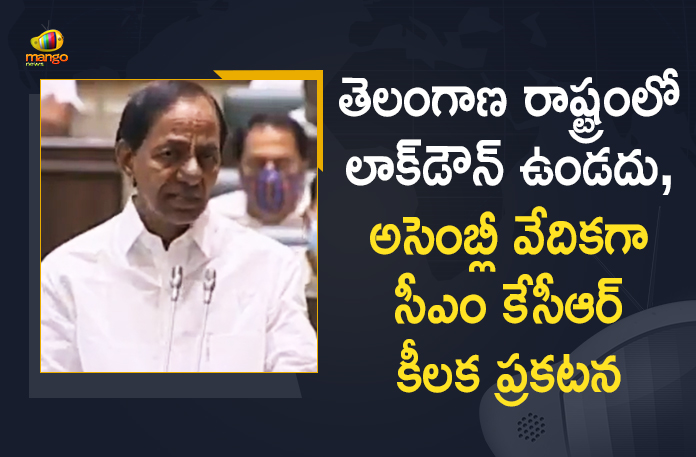 రాష్ట్రంలో కరోనా కేసులు పెరుగుతున్న నేపథ్యంలో లాక్డౌన్ పై చర్చ జరుగుతుండడంతో, తెలంగాణ ముఖ్యమంత్రి కె.చంద్రశేఖర్ రావు అసెంబ్లీ వేదికగా స్పష్టత ఇచ్చారు. తెలంగాణలో మరోసారి లాక్డౌన్ విధించబోమని పేర్కొన్నారు. “తొందరపడి లాక్డౌన్ అనేది పెట్టబోము. పరిశ్రమల మూసివేత అనేది ఉండదు. ఇప్పటికే చాలా దెబ్బతిన్నాం. ఒకేవైపు కరోనాను నియంత్రించడానికి, అరికట్టడానికి తీసుకోవాల్సిన అన్ని చర్యలు తీసుకుంటూనే, ఎట్టి పరిస్థితిల్లో రాష్ట్రంలో లాక్డౌన్ విధించబడదు. తొందరపాటి నిర్ణయాలు ఉండవు. ఎవ్వరు కూడా దయచేసి ఆందోళన చెందవద్దు. మాస్కులు ధరించడం, భౌతిక దూరం పాటించడం, పరిశుభ్రంగా ఉండడం, శానిటైజర్స్ వాడడం వలన కరోనా ముప్పు తగ్గుతుంది. పంక్షన్స్ లో జనాభాను తగ్గించుకోవడం, ఎక్కువమందితో ఊరేగింపులు తగ్గించుకుంటే మంచిదనే మాట రాష్ట్రంలో ప్రతి ఒక్కరికి విజ్ఞప్తి చేస్తున్నాను. రాష్ట్రంలో కరోనా విస్పోటన రూపం తీసుకోక ముందే చర్యలు తీసుకున్నాం. బాధతోనే స్కూళ్లను, విద్యాసంస్థలను మూసివేశాం. విద్యాసంస్థలను కూడా తాత్కాలికంగానే మూసివేశామనే విషయాన్ని ప్రతి ఒక్కరూ గ్రహించాలి” అని సీఎం కేసీఆర్ పేర్కొన్నారు.