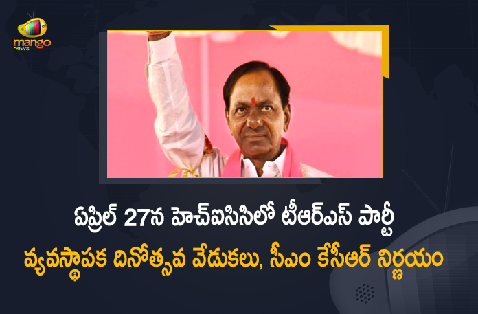 తెలంగాణ రాష్ట్ర సమితి (టీఆర్ఎస్) పార్టీ వ్యవస్థాపక దినోత్సవాన్ని ఏప్రిల్ 27వ తేదీన మాదాపూర్ లోని హెచ్ఐసిసిలో నిర్వహించాలని పార్టీ అధ్యక్షుడు, ముఖ్యమంత్రి కె.చంద్రశేఖర్ రావు నిర్ణయించారు. ఏప్రిల్ 27 బుధవారం ఉదయం 10 గంటలకల్లా ప్రతినిధులందరూ హెచ్ఐసిసి సమావేశమందిరానికి చేరుకోవాలని సీఎం కేసీఆర్ తెలిపారు. ఉదయం 10 గంటల నుంచి 11 గంటల వరకు ప్రతినిధుల నమోదు కార్యక్రమం జరుగుతుందని, 11:05 గంటలకు సీఎం కేసీఆర్ ఆగమనం, అనంతరం పార్టీ పతాకావిష్కరణ, స్వాగతోపన్యాసం ఉంటాయని పేర్కొన్నారు. అలాగే ఆ సందర్భంగా దాదాపు 11 తీర్మానాలు ప్రవేశపెట్టి, వాటిపై చర్చించి ఆమోదించడం జరుగుతుందని చెప్పారు. టీఆర్ఎస్ పార్టీ వ్యవస్థాపక దినోత్సవ కార్యక్రమం అదే సాయంత్రం 5 గంటల దాకా కొనసాగి, ముగుస్తుందని తెలిపారు.