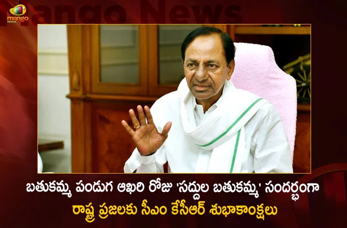 రాష్ట్ర పండుగ బతుకమ్మ ఆఖరి రోజు ‘సద్దుల బతుకమ్మ’ సందర్భంగా ముఖ్యమంత్రి కె.చంద్రశేఖర్ రావు రాష్ట్ర ప్రజలకు శుభాకాంక్షలు తెలిపారు. నిండిన చెరువులు, పచ్చని పంట పొలాల మధ్య ప్రకృతితో మమేకమై, తొమ్మిది రోజుల పాటు సాగిన ఆడబిడ్డల ఆటా పాటలతో, పల్లెలు పట్టణాలు ప్రత్యేక సాంస్కృతిక వాతావరణాన్ని సంతరించుకున్నాయని సీఎం కేసీఆర్ అన్నారు. విజయాలనందించే విజయదశమిని స్వాగతిస్తూ ముగిసే తొమ్మిది రోజుల బతుకమ్మ ఉత్సవాలను ఘనంగా జరుపుకునేందుకు రాష్ట్ర ప్రభుత్వం చేపట్టిన చర్యలు విజయవంతమయ్యాయని సీఎం తెలిపారు. ఇందుకు సహకరించిన ప్రతి ఒక్కరికీ అభినందనలు తెలిపారు. రాష్ట్రం సుభిక్షంగా వర్దిల్లేలా, ప్రజలంతా సుఖ శాంతులతో జీవించేలా దీవించాలని మరోసారి అమ్మవారిని సీఎం కేసీఆర్ ప్రార్థించారు.