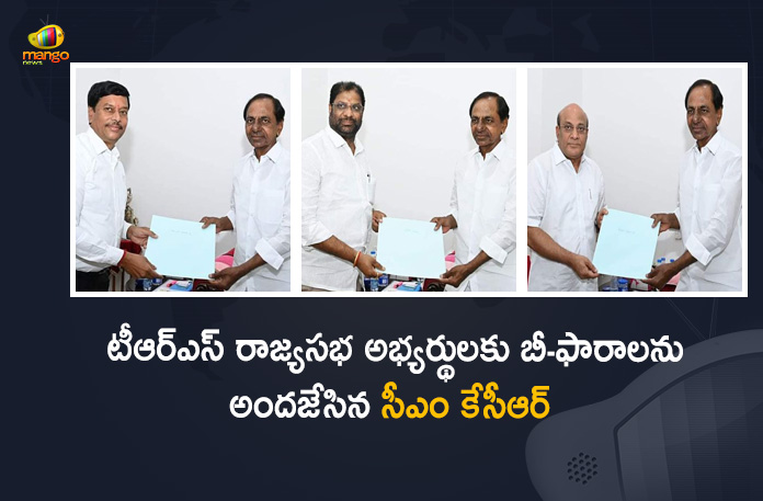 తెలంగాణ రాష్ట్రంలో త్వరలో జరగనున్న 3 రాజ్యసభ స్థానాల ఎన్నికలకు తెలంగాణ రాష్ట్ర సమితి పార్టీ (టీఆర్ఎస్) తమ అభ్యర్థుల పేర్లను బుధవారం నాడు ప్రకటించింది. టీఆర్ఎస్ రాజ్యసభ అభ్యర్థులుగా నమస్తే తెలంగాణ దినపత్రిక ఎండీ దీవకొండ దామోదర్ రావు, హెటెరో అధిపతి డాక్టర్ బండి పార్థసారథి రెడ్డి, వద్దిరాజు రవిచంద్ర (గాయత్రి రవి) పేర్లను టీఆర్ఎస్ అధ్యక్షుడు, ముఖ్యమంత్రి కె.చంద్రశేఖర్ రావు ప్రకటించారు. ఈ నేపథ్యంలో బుధవారం సాయంత్రం వీరు ముగ్గురు ప్రగతి భవన్ లో సీఎం కేసీఆర్ ను కలిసి, తమకు అవకాశం ఇచ్చినందుకు కృతజ్ఞతలు తెలిపారు. ఈ సందర్భంగా ఈ ముగ్గురికి సీఎం కేసీఆర్ బీ-ఫారాలను కూడా అందజేశారు.