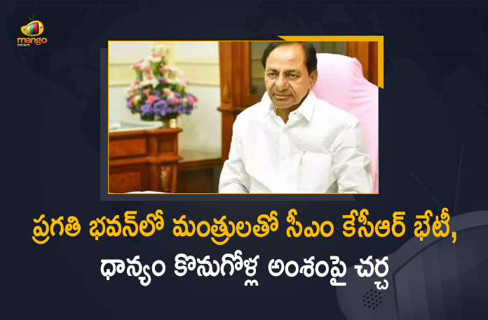 రాష్ట్రంలోని యాసంగి వరి ధాన్యం కొనుగోళ్ళ అంశంపై గురువారం నాడు కేంద్ర ఆహార, ప్రజా పంపిణీ శాఖ మంత్రి పీయూష్ గోయల్ తో తెలంగాణ రాష్ట్ర మంత్రులు సింగిరెడ్డి నిరంజన్ రెడ్డి, గంగుల కమలాకర్, వేముల ప్రశాంత్రెడ్డి, పువ్వాడ అజయ్కుమార్, పలువురు టీఆర్ఎస్ ఎంపీలు భేటీ అయి చర్చించిన విషయం తెలిసిందే. అనంతరం ఢిల్లీ పర్యటన ముగించుకుని మంత్రుల బృందం రాష్ట్రానికి చేరుకుంది. ఈ నేపథ్యంలో ధాన్యం కొనుగోళ్ల అంశంపై ఢిల్లీ వెళ్లొచ్చిన మంత్రులతో ముఖ్యమంత్రి కె.చంద్రశేఖర్ రావు శుక్రవారం ప్రగతి భవన్ లో సమావేశమయ్యారు. కేంద్ర మంత్రి పీయూష్ గోయల్ తో జరిగిన చర్చల వివరాలను ఈ సందర్భంగా మంత్రులు సీఎంకు వివరించనున్నట్టు తెలుస్తుంది. అలాగే ఈ సమావేశం తర్వాత ధాన్యం కొనుగోళ్ల విషయంలో కేంద్రం వైఖరిపై చేపట్టబోయే భవిష్యత్ కార్యాచరణపై కూడా సీఎం కేసీఆర్ నిర్ణయం తీసుకోనున్నట్టు సమాచారం.