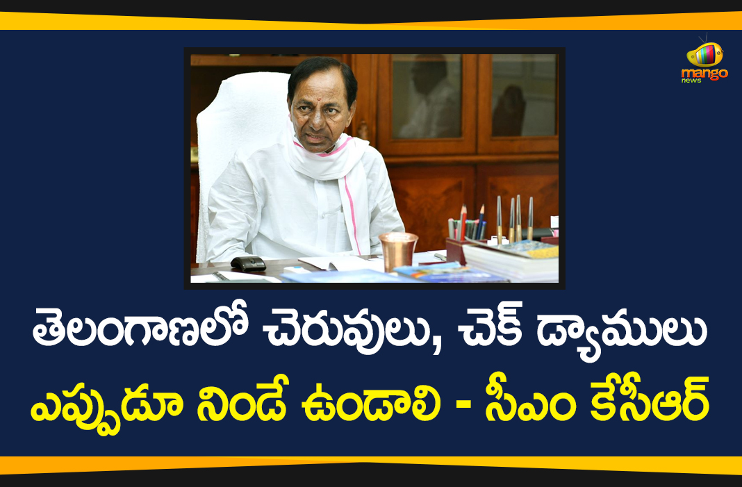‘‘గోదావరి, కృష్ణా నదులపై ఎంతో వ్యయం చేసి, ఎన్నో అవరోధాలను అధిగమించి రాష్ట్ర ప్రభుత్వం భారీ ప్రాజెక్టులను నిర్మిస్తున్నది. పెండింగ్ ప్రాజెక్టులను శరవేగంగా పూర్తి చేసింది. ఉద్యమ స్పూర్తితో చెరువులను పునరుద్ధరించింది. ఇలా చేసిన పనుల ఫలితం ప్రజలకు అందాలంటే వీలైనంత ఎక్కువ వ్యవసాయ భూములకు సాగునీరు అందించడమే మార్గం. ఇప్పటి వరకు తెలంగాణ సాగునీటికి గోస పడ్డది. తెలంగాణ రాష్ట్రం ఏర్పడిన తర్వాత టిఆర్ఎస్ ప్రభుత్వం నీటి పారుదల రంగానికి అత్యధిక ప్రాధాన్యత ఇచ్చింది. కాళేశ్వరంతో పాటు ఇతర ప్రాజెక్టుల వల్ల ఇప్పుడు పుష్కలంగా నీటి లభ్యత ఏర్పడింది. అలా వచ్చిన నీటిని సంపూర్ణంగ వినియోగించుకోవాలి. ఎక్కువ ఆయకట్టుకు నీరందించాలి. అన్ని ప్రాజెక్టుల పరిధిలో చివరి ఆయకట్టు వరకు నీరు పంపించడానికి అనువుగా కాల్వల సామర్థ్యం ఉందా లేదా మరో సారి పరిశీలించాలి. అవసరమైతే నీటి ప్రవాహ సామర్థ్యాన్ని పెంచాలి. ముందుగా చెరువులను నింపాలి. తర్వాత రిజర్వాయర్లను నింపాలి. చివరికి ఆయకట్టుకు నీరందించాలి. ఈ విధంగా ప్రణాళికా ప్రకారం నీటిని సరఫరా చేయాలి. దీనివల్ల వానాకాలంలో లభించే నీటిని పెద్ద మొత్తంలో నిల్వ చేసుకోవడం సాధ్యమవుతుంది. తెలంగాణలో చెరువులు, చెక్ డ్యాములు ఎప్పుడూ నిండే ఉండాలి. ఫలితంగా భూగర్భ జలమట్టం పెరిగి రైతులు దాదాపు 45 వేల కోట్ల వ్యయం చేసి వేసుకున్న బోర్లకు నీరందుతుంది. అటు కాల్వలు, ఇటు చెరువులు, మరోవైపు బోర్ల ద్వారా వ్యవసాయం సాగుతుందని’’ సీఎం కేసీఆర్ చెప్పారు.