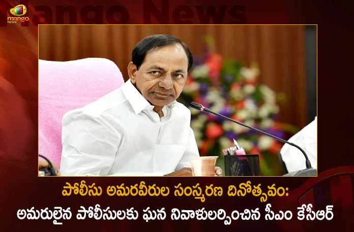 పౌరుల భద్రత, నేర నివారణ, శాంతి భద్రతల పరిరక్షణ కోసం తమ జీవితాలను తృణప్రాయంగా అర్పించిన పోలీసుల త్యాగం అజరామరమని ముఖ్యమంత్రి కె.చంద్రశేఖర్ రావు అన్నారు. “పోలీసు అమరవీరుల సంస్మరణ దినోత్సవం” సందర్భంగా అమరులైన పోలీసులకు సీఎం ఘన నివాళులర్పించారు. ఈ సందర్భంగా పోలీసుల త్యాగాలను సీఎం స్మరించుకున్నారు. విధి నిర్వహణ కోసం ప్రాణాలనైనా అర్పించేందుకు సిద్ధపడే పోలీసుల త్యాగం, దేశ రక్షణ కోసం పోరాడే సైనికుల త్యాగాలతో సమానమైనవన్నారు. కుటుంబాలకు దూరంగా, సమాజ శ్రేయస్సే లక్ష్యంగా, అహర్నిశలు శ్రమిస్తున్న పోలీసుల సేవలు వెలకట్టలేనివన్నారు. ప్రశాంత రాష్ట్రంగా తెలంగాణను తీర్చిదిద్దడంలో, శాంతి భధ్రతల నిర్వహణలో తెలంగాణ రాష్ట్రం దేశానికి ఆదర్శంగా నిలపడంలో పోలీసుల పాత్ర గొప్పదని సీఎం అన్నారు. రాష్ట్రంలో నెలకొన్న ప్రశాంత వాతావరణం తెలంగాణ సాధిస్తున్న అభివృద్ధిలో కీలక పాత్ర పోషిస్తున్నదన్నారు. అందుకు హోం మంత్రిని, రాష్ట్ర పోలీసు శాఖను, డీజీపీని, పోలీసు ఉన్నతాధికారులను సిబ్బందిని కేసీఆర్ సీఎం అభినందించారు.