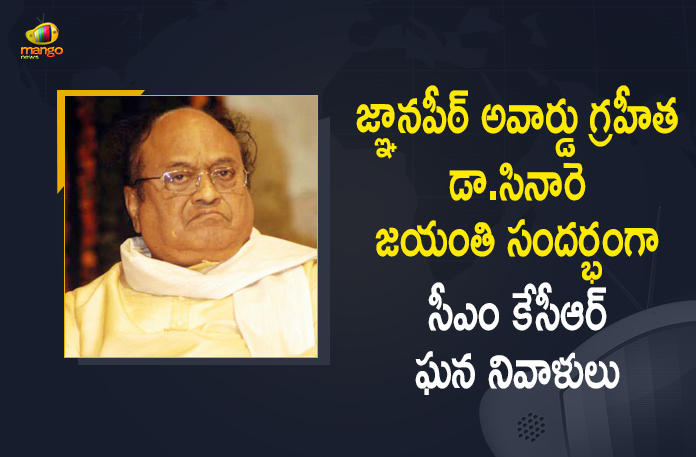 జ్ఞానపీఠ్ అవార్డు గ్రహీత డా.సింగిరెడ్డి నారాయణ రెడ్డి (సినారె) జయంతి సందర్భంగా ముఖ్యమంత్రి కె.చంద్రశేఖర్ రావు ఆయనకు ఘన నివాళులు అర్పించారు. కవిగా, సినీ గీతాల రచయితగా, పలు సాహితీ ప్రక్రియలను కొనసాగించి తెలంగాణ భాష, సాహిత్య రంగానికి సినారె చేసిన సేవలు చిరస్మరణీయమని అన్నారు. గజల్ వంటి ఉర్దూ సాహితీ సంప్రదాయానికి గౌరవమిచ్చి, తెలంగాణ సాహిత్యాన్ని గంగా జమునా తహజీబ్కు ప్రతీకగా డా.సినారె నిలిపారని సీఎం కేసీఆర్ పేర్కొన్నారు.