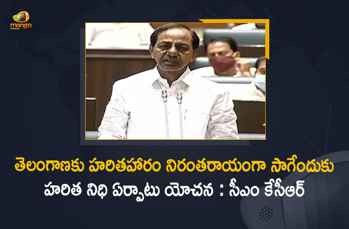 తెలంగాణ శాసనసభలో శుక్రవారం హరితహారంపై చర్చలో భాగంగా ముఖ్యమంత్రి కె.చంద్రశేఖర్ రావు కీలక ప్రకటన చేశారు. రాష్ట్రంలో కొనసాగుతున్న తెలంగాణకు హరితహారం కార్యక్రమంకు తోడ్పాటుగా హరిత నిధి ఏర్పాటుపై ప్రతిపాదన చేశారు. హరిత నిధిని సభ్యులు ఏకగ్రీవంగా ఆమోదించాలని సీఎం కోరారు. హరిత నిధి కోసం ప్రతి నెల ఎంపీలు, ఎమ్మెల్యేలు, ఎమ్మెల్సీలు రూ.500 జమ చేయనున్నట్టు తెలిపారు. టీఆర్ఎస్ ఎంపీలు, ఎమ్మెల్యేలు, ఎమ్మెల్సీలు అంగీకరించారని, మిగతా పక్షాలకు కూడా ముందుకు రావాలని కోరారు. ప్రతి నెల ఐపీఎస్, ఐఎఫ్ఎస్ ఆఫీసర్లు రూ.100, ప్రభుత్వ ఉద్యోగులు రూ. 25 ఇచ్చేలా ప్రతిపాదన చేశామన్నారు.