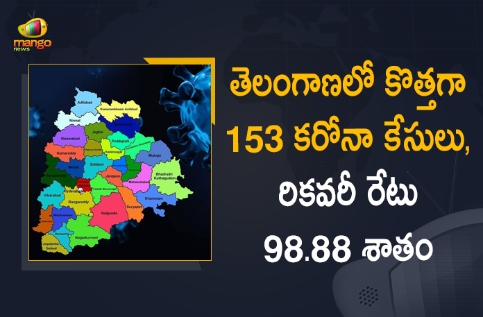 తెలంగాణ రాష్ట్రంలో కరోనా మహమ్మారి ప్రభావం తగ్గుముఖం పట్టింది. కొత్తగా 153 పాజిటివ్ కేసులు నమోదవడంతో నవంబర్ 23, మంగళవారం సాయంత్రం 5:30 గంటల వరకు మొత్తం పాజిటివ్ కేసుల సంఖ్య 6,74,845 కి చేరినట్టు రాష్ట్ర వైద్య ఆరోగ్యశాఖ బులెటిన్ విడుదల చేసింది. కరోనా వలన మరో ఇద్దరు మరణించడంతో, రాష్ట్రంలో మొత్తం మరణాల సంఖ్య 3,984 కి పెరిగింది. కరోనా రికవరీ రేటు 98.88 శాతంకాగా, మరణాల రేటు 0.59 శాతంగా నమోదైంది.