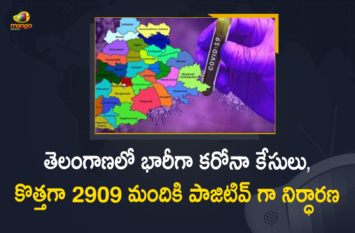 తెలంగాణ రాష్ట్రంలో కరోనా పాజిటివ్ కేసులు పెద్ద సంఖ్యలో నమోదయ్యాయి. కొత్తగా 2909 కేసులు నమోదవడంతో ఏప్రిల్ 9, శుక్రవారం రాత్రి 8 గంటల వరకు మొత్తం పాజిటివ్ కేసుల సంఖ్య 3,24,091 కి చేరినట్టు రాష్ట్ర వైద్య ఆరోగ్యశాఖ బులెటిన్ విడుదల చేసింది. కరోనా వలన మరో ఆరుగురు మరణించడంతో, రాష్ట్రంలో మొత్తం మరణాల సంఖ్య 1752 కి పెరిగింది. ఇక గత 24 గంటల్లో 584 మంది కరోనా నుంచి కోలుకోగా, రికవరీ అయినవారి సంఖ్య 3,04,548 కు చేరుకుంది. ప్రస్తుతం 17,791 యాక్టీవ్ కేసులు ఉన్నాయి. మరోవైపు శుక్రవారం నాడు 1,11,726 శాంపిల్స్ కు పరీక్షలు నిర్వహించడంతో మొత్తం పరీక్షల సంఖ్య 1,08,73,665 కు చేరగా, రాష్ట్రంలో ప్రతి పదిలక్షల జనాభాకు 2,92,145 పరీక్షలు నిర్వహించినట్టు పేర్కొన్నారు.