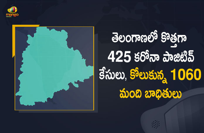 తెలంగాణ రాష్ట్రంలో రోజువారీ కరోనా పాజిటివ్ కేసులు నమోదు తగ్గుముఖం పట్టింది. కొత్తగా 425 మందికి కరోనా పాజిటివ్ గా నిర్ధారణ కావడంతో ఫిబ్రవరి 18, శుక్రవారం సాయంత్రం 5.30 గంటలవరకు మొత్తం కేసుల సంఖ్య 7,86,021కి చేరింది. ఇక కరోనా వలన కొత్తగా ఎలాంటి మరణాలు నమోదు కాలేదు, దీంతో మొత్తం కరోనా మరణాల సంఖ్య 4,108 గా ఉంది. అలాగే మరో 1,060 మంది కోలుకోగా, ఇప్పటివరకు రికవరీ అయినవారి సంఖ్య 7,75,802కు చేరుకుంది. తాజాగా నమోదైన కరోనా పాజిటివ్ కేసుల్లో అత్యధికంగా జీహెచ్ఎంసీ పరిధిలో 130, రంగారెడ్డిలో 29, మేడ్చల్ మల్కాజిగిరి జిల్లాలో 28, నల్గొండలో 23, ఖమ్మంలో 20, సిద్దిపేటలో 19, కరీంనగర్ లో 18 నమోదయ్యాయి.