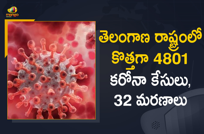 తెలంగాణ రాష్ట్రంలో కరోనా మహమ్మారి ప్రభావం కొనసాగుతుంది. కొత్తగా 4801 కేసులు నమోదవడంతో మే 11, మంగళవారం సాయంత్రం 5:30 గంటల వరకు మొత్తం పాజిటివ్ కేసుల సంఖ్య 5,06,988 కి చేరినట్టు రాష్ట్ర వైద్య ఆరోగ్యశాఖ బులెటిన్ విడుదల చేసింది. కరోనా వలన మరో 32 మంది మరణించడంతో, రాష్ట్రంలో మొత్తం మరణాల సంఖ్య 2803 కి పెరిగింది.