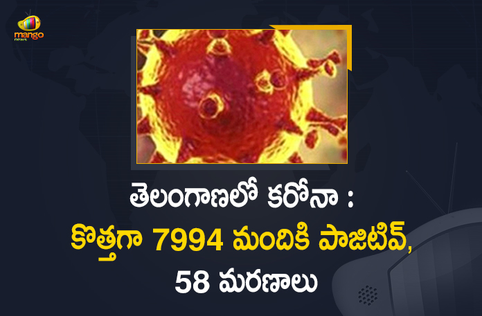 తెలంగాణ రాష్ట్రంలో కరోనా వ్యాప్తి ప్రభావం కొనసాగుతుంది. కొత్తగా 7994 మందికి కరోనా పాజిటివ్ గా నిర్ధారణ అయింది. దీంతో ఏప్రిల్ 28, బుధవారం రాత్రి 8 గంటల నాటికీ మొత్తం కరోనా కేసుల సంఖ్య 4,27,960 కి చేరినట్టు రాష్ట్ర వైద్య ఆరోగ్యశాఖ బులెటిన్ విడుదల చేసింది. అలాగే కరోనా నుంచి మరో 4009 మంది కోలుకోవడంతో ఇప్పటివరకు రికవరీ అయినవారి సంఖ్య 3,49,692 కి చేరింది. రాష్ట్రంలో కరోనా రికవరీ శాతం 81.71 శాతంగా ఉంది.