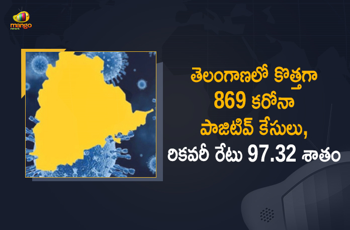 తెలంగాణ రాష్ట్రంలో కరోనా వ్యాప్తి ప్రభావం తగ్గుముఖం పట్టింది. కొత్తగా 869 మందికి కరోనా పాజిటివ్ గా నిర్ధారణ అయింది. దీంతో జూలై 1, గురువారం సాయంత్రం 5:30 గంటల నాటికీ మొత్తం కరోనా కేసుల సంఖ్య 6,24,379 కి చేరినట్టు రాష్ట్ర వైద్య ఆరోగ్యశాఖ బులెటిన్ విడుదల చేసింది. అలాగే కరోనా నుంచి మరో 1197 మంది కోలుకోవడంతో ఇప్పటివరకు రికవరీ అయినవారి సంఖ్య 6,07,658 కి చేరింది. రాష్ట్రంలో కరోనా రికవరీ రేటు 97.32 శాతంగా ఉంది.