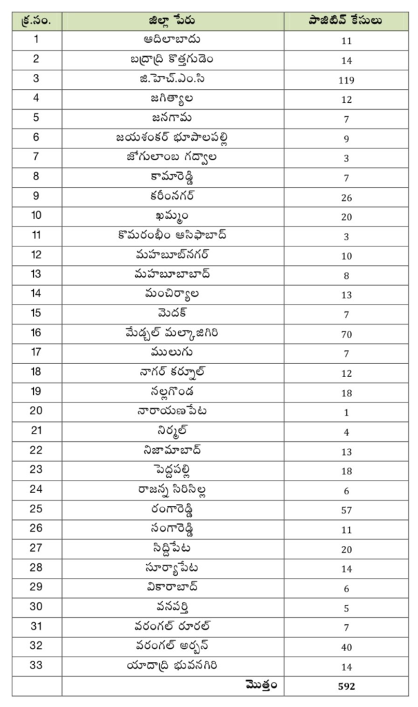 రాష్ట్రంలో జిల్లాలవారీగా కొత్తగా నమోదైన కేసులు(592):