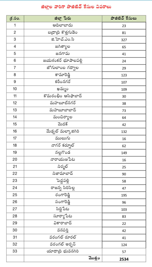 రాష్ట్రంలో జిల్లాలవారీగా కొత్తగా నమోదైన కేసులు(2534):