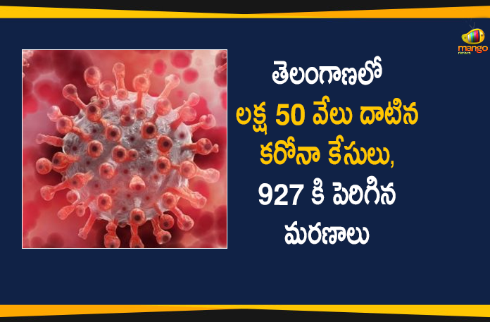 తెలంగాణ రాష్ట్రంలో కరోనా పాజిటివ్ కేసుల సంఖ్య లక్ష 50 వేలు దాటింది. సెప్టెంబర్ 9, బుధవారం రాత్రి 8 గంటల నాటికీ మొత్తం కరోనా పాజిటివ్ కేసుల సంఖ్య 1,50,176 కి చేరినట్టు రాష్ట్ర వైద్య ఆరోగ్యశాఖ బులెటిన్ విడుదల చేసింది. బుధవారం నాడు కొత్తగా 2534 కేసులు నమోదవగా, 63,017 శాంపిల్స్ పరీక్షించినట్టుగా పేర్కొన్నారు. కరోనా వలన మరో 11 మంది మరణించడంతో రాష్ట్రంలో ఇప్పటివరకు మరణించిన వారి సంఖ్య 927 కి పెరిగింది. రాష్ట్రంలో 1,17,143 మంది కరోనా నుంచి కోలుకోగా, ప్రస్తుతం 32,106 మంది బాధితులు చికిత్స పొందుతున్నారు. రాష్ట్రంలో కరోనా రికవరీ రేటు 78 శాతానికి చేరుకోగా, మరణాల రేటు 0.61 (<1%) శాతంగా ఉంది.