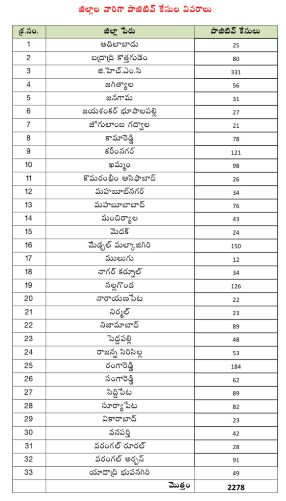 రాష్ట్రంలో జిల్లాలవారీగా కొత్తగా నమోదైన కేసులు(2278):