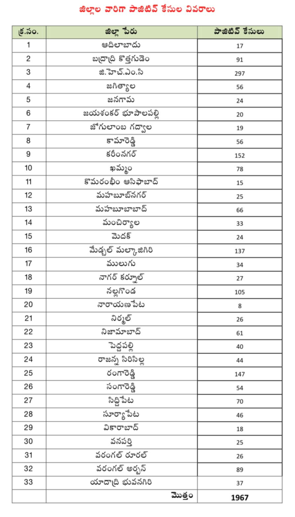 రాష్ట్రంలో జిల్లాలవారీగా కొత్తగా నమోదైన కేసులు(1967):