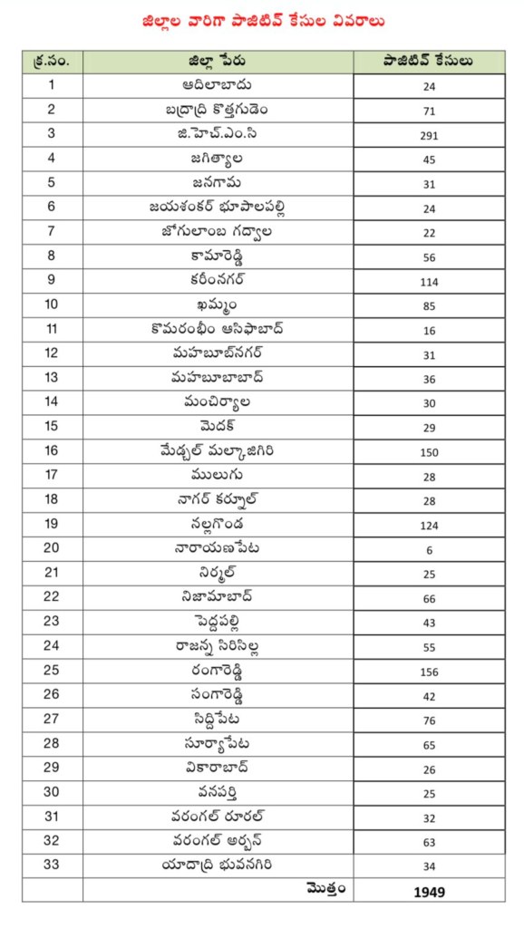 రాష్ట్రంలో జిల్లాలవారీగా కొత్తగా నమోదైన కేసులు(1949):