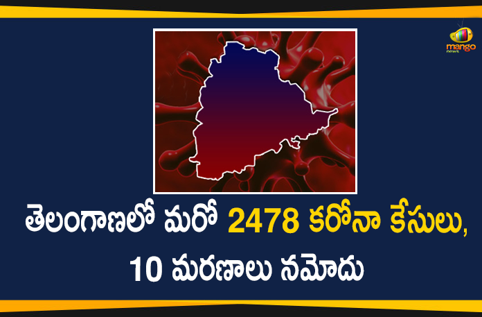 తెలంగాణలో మరో 2478 కరోనా కేసులు, 10 మరణాలు నమోదు
