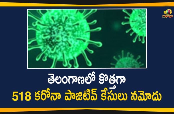 తెలంగాణ రాష్ట్రంలో గురువారం నాడు 44,869 శాంపిల్స్ పరీక్షించగా 518 మందికి కరోనా పాజిటివ్ గా నిర్ధారణ అయింది. దీంతో రాష్ట్రంలో ఇప్పటికి మొత్తం కేసుల సంఖ్య 2,84,074 కి చేరింది. అలాగే కరోనాతో మరో ముగ్గురు మరణించడంతో మొత్తం మరణాల సంఖ్య 1527 కి పెరిగింది. తాజాగా నమోదైన కరోనా పాజిటివ్ కేసుల్లో అత్యధికంగా జీహెచ్ఎంసీ పరిధిలో 91, రంగారెడ్డిలో 41, మేడ్చల్-మల్కాజ్ గిరిలో 39, వరంగల్ అర్బన్ లో 35, ఖమ్మంలో 26, కరీంనగర్ లో 25, నల్గొండలో 21, మంచిర్యాలలో 20, సంగారెడ్డిలో 20, భద్రాద్రి కొత్తగూడెంలో 19 నమోదయ్యాయి.