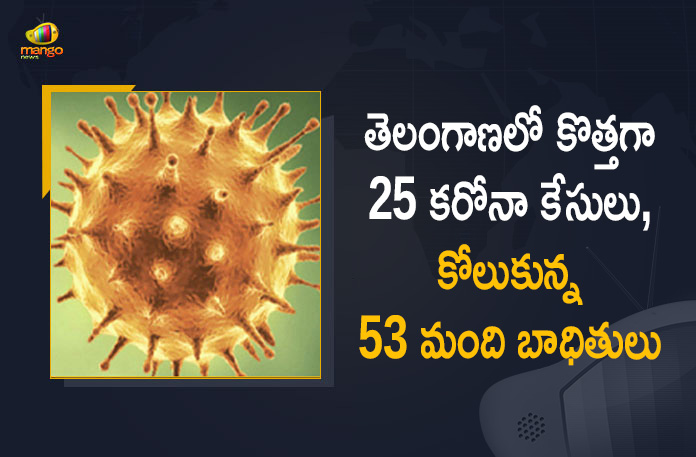 తెలంగాణలో కొత్తగా 25 కరోనా కేసులు, కోలుకున్న 53 మంది బాధితులు