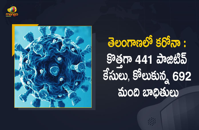 తెలంగాణ రాష్ట్రంలో కరోనా మహమ్మారి ప్రభావం కొనసాగుతుంది. కోత్తగా 441 పాజిటివ్ కేసులు నమోదవడంతో జూలై 17, ఆదివారం సాయంత్రం 5:30 గంటల నాటికీ మొత్తం కేసుల సంఖ్య 8,09,778 కి చేరినట్టు రాష్ట్ర వైద్య ఆరోగ్యశాఖ బులెటిన్ విడుదల చేసింది. ఇక గత 24 గంటల్లో 692 మంది కరోనా నుంచి కోలుకోగా, రికవరీ అయినవారి సంఖ్య 8,01,018 కు చేరుకుంది. ప్రస్తుతం 4,649 మంది ఐసోలేషన్ లో లేదా చికిత్స తీసుకుంటున్నట్టు తెలిపారు.