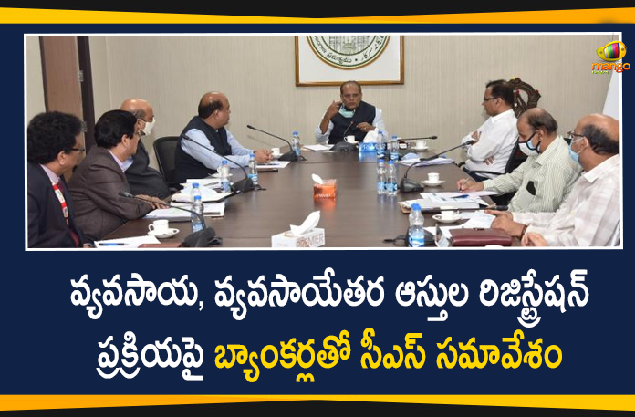 రాష్ట్రంలో వ్యవసాయ మరియు వ్యవసాయేతర ఆస్తుల రిజిస్ట్రేషన్ ప్రక్రియ గురించి వివరించడానికి, సందేహాల నివృత్తి నిమిత్తం తెలంగాణ రాష్ట్ర ప్రభుత్వ ప్రధాన కార్యదర్శి సోమేశ్ కుమార్ బుధవారం నాడు బ్యాంకర్లతో సమావేశం నిర్వహించారు. ఈ సమావేశంలో బ్యాంకింగ్ మరియు మార్ట్ గేజ్ మాడ్యూల్ పై పవర్ పాయింట్ ప్రజెంటేషన్ ద్వారా అన్ని వివరాలను బ్యాంకర్లకు తెలియజేశారు. అనంతరం బ్యాంకర్లు ఈ ప్రకియను ప్రశంసిస్తూ వ్యవస్థలో మరింత పారదర్శకతను తెస్తుందని పేర్కొన్నారు. రిజిస్ట్రేషన్ మొత్తం ప్రక్రియలో ప్రభుత్వానికి, స్టాంపులు మరియు రిజిస్ట్రేషన్ శాఖకు సహకరిస్తామని ఈ సందర్భంగా బ్యాంకర్లు తెలిపారు.