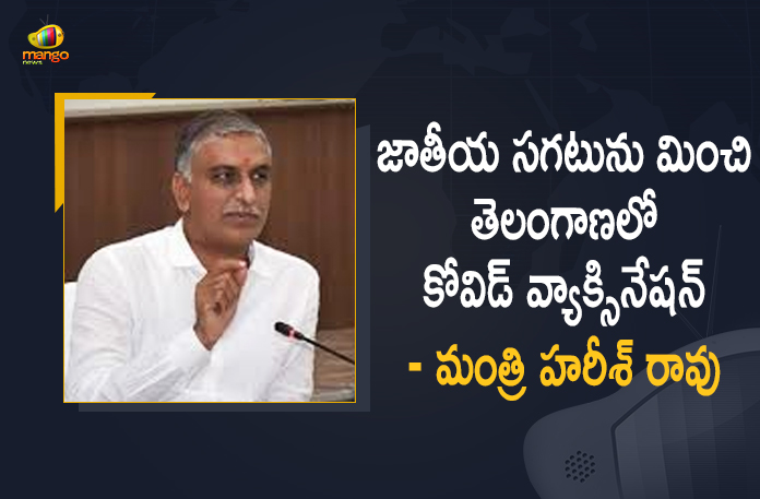 తెలంగాణ రాష్ట్ర ఆరోగ్య శాఖ మంత్రి హరీశ్ రావు గురువారం నాడు హైదరాబాద్ లోని ఎంసీహెచ్చార్డీలో వైద్యారోగ్యశాఖ ఉన్నతాధికారులతో సమీక్ష నిర్వహించారు. ఈ సందర్భంగా మంత్రి హరీశ్ రావు మాట్లాడుతూ, రాష్ట్రంలో జాతీయ సగటును మించి వ్యాక్సినేషన్ పూర్తయిందని చెప్పారు. బుధవారం నాటికి రాష్ట్రంలో 84.3 శాతం మందికి మొదటి డోస్ పూర్తి కాగా, 38.5 శాతం మందికి రెండో డోస్ వ్యాక్సిన్ వేశారని అన్నారు. అదే సమయంలో జాతీయ స్థాయిలో మొదటిడోస్ 79 శాతంగా, రెండో డోస్ 37.5 శాతంగా నమోదైందని వెల్లడించారు. అలాగే ఈ సమీక్ష సందర్భంగా రాష్ట్రంలో కరోనా పరిస్థితులు, వ్యాక్సిన్ డ్రైవ్, కొత్త మెడికల్ కాలేజీలు, కొత్త మల్టీ స్పెషాలిటీ ఆసుపత్రుల నిర్మాణం, వరంగల్లోని మల్టీ సూపర్ స్పెషాల్టీ ఆసుపత్రి నిర్మాణం తదితర అంశాలపై అధికారులతో చర్చించారు.
