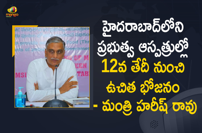 12వ తేదీ నుంచి హైదరాబాద్ నగరంలోని 18 ప్రభుత్వ ఆస్పత్రుల్లో మూడు పూటలా నాణ్యమైన ఉచిత భోజనం అందించనున్నామని హరీష్ రావు వెల్లడించారు. ఆస్పత్రులలో చికిత్స పొందుతున్న పేషెంట్స్ కు ఆస్పత్రి లోపల భోజనం అందిస్తామని, అదే విధంగా చికిత్స పొందుతున్న తమ సహాయకుల కోసం కేవలం రూ. 5 లకే భోజనం అందించబడుతుందని తెలిపారు. ఒక రోజుకి రూ. 15 లకు వేడి, తాజా ఆహారాన్ని అందిస్తామని చెప్పారు. దీనివల్ల రోజుకు 18,600 మందికి లబ్ధి చేకూరనుందని, పేద, మధ్యతరగతి రోగులను పట్టించుకునే ప్రభుత్వం రూ.24.25 ఖర్చు చేసే భోజనంపై రూ.19.25 సబ్సిడీ చెల్లిస్తోందని. దీంతో రాష్ట్ర ప్రభుత్వంపై ఏటా రూ.38.66 కోట్ల అదనపు భారం పడనుందని మంత్రి తెలిపారు.
