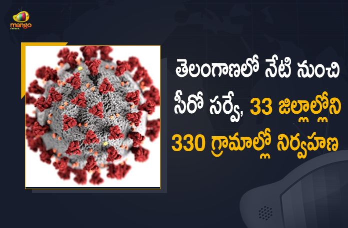 హైదరాబాద్కు చెందిన ఐసీఎంఆర్-నేషనల్ ఇన్స్టిట్యూట్ ఆఫ్ న్యూట్రిషన్ (ఎన్ఐఎన్) మరియు తెలంగాణ రాష్ట్ర ప్రభుత్వం కలిసి నేటి నుంచి (జనవరి 4, 2022) రాష్ట్రవ్యాప్తంగా కోవిడ్-19 సీరో సర్వేని ప్రారంభించనున్నారు. ఈ సర్వే సాధారణ జనాభా మరియు ఆరోగ్య కార్యకర్తలతో నిర్వహించనున్నారు. తెలంగాణలోని అన్ని జిల్లాల్లో మరియు రాష్ట్రంలో వైరస్ యొక్క సామాజిక వ్యాప్తిని అంచనా వేయడమే లక్ష్యంగా ఈ సీరో సర్వే చేపట్టనున్నారు. జిల్లాల్లోని సాధారణ జనాభా మరియు హెల్త్ కేర్ వర్కర్స్ నుండి సేకరించే రక్త నమూనాలలో కోవిడ్-19, యాంటీబాడీలను పరిశీలించడం ద్వారా సీరో-ప్రివెలెన్స్ అంచనా వేయనున్నారు. తెలంగాణ ప్రభుత్వం ఈ సర్వేకు మద్దతు ఇస్తుండగా, రాష్ట్ర ఆరోగ్య శాఖ మరియు ఇతర పరిపాలనా విభాగాలు ఐసీఎంఆర్-ఎన్ఐఎన్ తో సహకరించనున్నాయి. రాష్ట్రంలోని మొత్తం 33 జిల్లాల్లోని 330 గ్రామాల్లో, పలు వార్డుల్లో ఇంటింటికి సర్వే చేయనున్నారు.