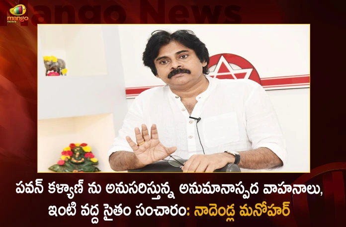 జనసేన పార్టీ అధ్యక్షుడు పవన్ కళ్యాణ్ ను అనుమానాస్పద వ్యక్తులు ఈ మధ్య ఎక్కువగా అనుసరిస్తున్నారని జనసేన నేత, పార్టీ పీఏసీ చైర్మన్ నాదెండ్ల మనోహర్ పేర్కొన్నారు. ఈ మేరకు బుధవారం నాదెండ్ల మనోహర్ ఒక ప్రకటన విడుదల చేశారు. “ముఖ్యంగా విశాఖ సంఘటన తరువాత పవన్ కళ్యాణ్ ఇల్లు, పార్టీ కార్యాలయం దగ్గర సందేహాస్పదంగా ఉన్న వ్యక్తులు తచ్చాడుతున్నారు. పవన్ కళ్యాణ్ ఇంటి నుంచి బయటకు వెళుతున్నప్పుడు, తిరిగి వస్తున్నప్పుడు ఆయన వాహనాన్ని అనుసరిస్తున్నారు. కారులోని వ్యక్తులు పవన్ కళ్యాణ్ వాహనాన్ని నిశితంగా పరిశీలిస్తున్నారు. అనుసరిస్తున్నవారు అభిమానులు ఎంత మాత్రం కాదని పవన్ కళ్యాణ్ వ్యక్తిగత రక్షణ సిబ్బంది చెబుతున్నారు. వారి కదలికలు అనుమానించే విధంగా ఉన్నాయని ఆవేదన వ్యక్తం చేస్తున్నారు” అని తెలిపారు.
