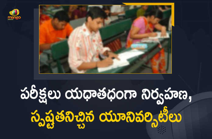 రాష్ట్రంలో కరోనా వ్యాప్తిని అరికట్టడం కోసం ముందు జాగ్రత్త చర్యగా వైద్య కళాశాలలు మినహా విద్యాసంస్థలన్నింటినీ మార్చి 24, బుధవారం నుంచి తాత్కాలికంగా మూసివేస్తునట్టుగా తెలంగాణ ప్రభుత్వం ప్రకటించిన సంగతి తెలిసిందే. అయితే విద్యాసంస్థలు మూసివేత నేపథ్యంలో పరీక్షలకు సంబంధించి విద్యార్థుల్లో సందేహాలు వ్యక్తమయ్యాయి. ఈ క్రమంలో పరీక్షల నిర్వహణపై యూనివర్సిటీలు స్పష్టత ఇచ్చాయి. తెలంగాణలోని ఉస్మానియా వర్సిటీ, జేఎన్టీయూ, కాకతీయ యూనివర్సిటీల పరిధిలో ముందుగా ప్రకటించిన షెడ్యూల్ ప్రకారమే పరీక్షలు యథాతథంగా జరుగునున్నాయి. కరోనా ప్రోటోకాల్ కు అనుగుణంగా పరీక్షల నిర్వహణ ఉంటుందని, విద్యా సంవత్సరం నష్టపోకుండా ఉండేందుకే ఈ నిర్ణయం తీసుకున్నట్టు తెలిపాయి. ఈ మేరకు ఆయా వర్సిటీలు ప్రకటన విడుదల చేశాయి.