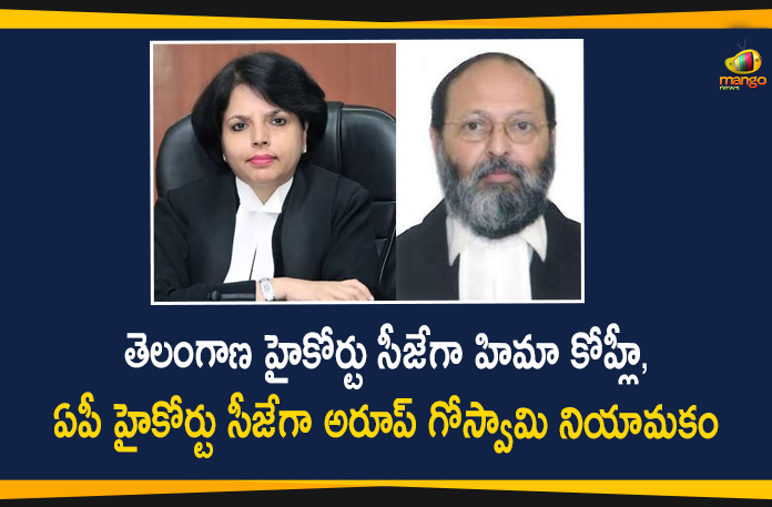 తెలంగాణ రాష్ట్ర హైకోర్టు ప్రధాన న్యాయమూర్తి(సీజే)గా జస్టిస్ హిమా కోహ్లీ నియమితులయ్యారు. అలాగే ఆంధప్రదేశ్ రాష్ట్ర హైకోర్టు ప్రధాన న్యాయమూర్తిగా జస్టిస్ అరూప్ కుమార్ గోస్వామి నియమితులయ్యారు. ఈ మేరకు ఇటీవలే సుప్రీంకోర్టు కొలీజియం సమావేశమై సిఫార్సులు చేసినట్టుగా ఓ ప్రకటనలో వెల్లడించారు. ప్రస్తుతం తెలంగాణ హైకోర్టు సీజేగా ఉన్న జస్టిస్ రాఘవేంద్రసింగ్ చౌహాన్ను ఉత్తరాఖండ్కు బదిలీ చేశారు. అదేవిధంగా ప్రస్తుతం ఏపీ సీజే గా ఉన్న జస్టిస్ జితేంద్ర కుమార్ మహేశ్వరిని సిక్కిం హైకోర్టుకు బదిలీ చేశారు. మరోవైపు తెలంగాణ హైకోర్టు సీజే గా బాధ్యతలు చేపట్టిన మొదటి మహిళగా జస్టిస్ హిమా కోహ్లీ నిలిచారు. ఏపీ, తెలంగాణనే కాకుండా దేశవ్యాప్తంగా పలురాష్ట్రాల హైకోర్టు ప్రధాన న్యాయమూర్తులు బదిలీ అయ్యారు.