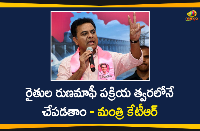టిఆర్ఎస్ వర్కింగ్ ప్రెసిడెంట్, రాష్ట్ర ఐటీ, పరిశ్రమలు, మున్సిపల్ శాఖ మంత్రి కేటీఆర్ మార్చ్ 2, సోమవారం నాడు తెలంగాణ భవన్ లో కొత్తగా ఎన్నికైన డీసీసీబీ, డీసీఎంఎస్ ఛైర్మన్లు, వైస్ ఛైర్మన్లతో సమావేశమయ్యారు. ఈ సందర్భంగా మాట్లాడుతూ, తెలంగాణలో రైతుల రుణమాఫీ పక్రియను త్వరలోనే చేపడతామని పేర్కొన్నారు. రుణమాఫీ ప్రక్రియ ప్రారంభించాలని ముఖ్యమంత్రి కేసీఆర్ ఆదేశాలు ఇచ్చారని, త్వరలోనే రైతు రుణమాఫీ జరుగుతుందని ఈ విషయంలో రైతులెవరూ ఆందోళన చెందవద్దని తెలిపారు. దేశంలో రైతులకు మొట్టమొదటిసారిగా రైతుబీమా, రైతుబంధు వంటి పథకాలను అందుబాటులోకి తెచ్చిన తొలి రాష్ట్రం తెలంగాణనే అన్నారు. రైతుల సంక్షేమం కోసం రాష్ట్ర ప్రభుత్వం ఎంత ఖర్చుకైనా వెనుకాడటం లేదని చెప్పారు. అలాగే తెలంగాణ ప్రభుత్వం ప్రతిష్టాత్మకంగా ప్రవేశపెట్టిన రైతు సమన్వయ సమితి పేరును త్వరలోనే రైతుబంధు సమితిలుగా మార్చబోతున్నట్లు మంత్రి కేటీఆర్ స్పష్టం చేశారు.