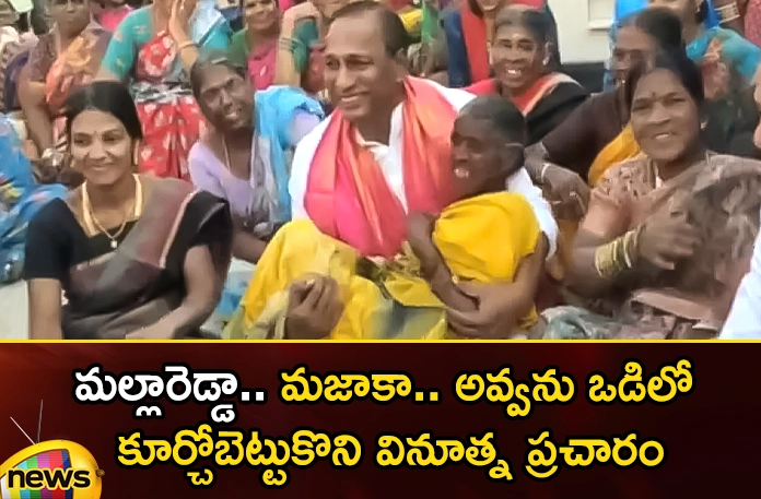 ఇప్పుడు మరోసారి మల్లారెడ్డికి సంబంధించిన ఓ వీడియో నెట్టింట్లో వైరలవుతోంది. శుక్రవారం మేడ్చల్లో మల్లారెడ్డి ప్రచారం నిర్వహించారు. ఈ సందర్భంగా కొందరు మహిళలు ఆయన సమక్షంలో బీఆర్ఎస్లో చేరారు. అయితే ఆ సమయంలో మహిళలంతా కింద కూర్చొని ఉండడంతో.. మల్లారెడ్డి కూడా వారితో కలిసి నేలపైనే కూర్చున్నారు. ఆ తర్వాత అతని వెనుక కూర్చున్న ఓ వృద్ధురాలిని ముందుకు రమ్మన్న మల్లారెడ్డి.. ఆమెను ఒడిలో కూర్చోబెట్టుకున్నారు. వృద్ధురాలికి పూల బొకే ఇచ్చి ఫొటోలకు ఫోజులు ఇచ్చారు.