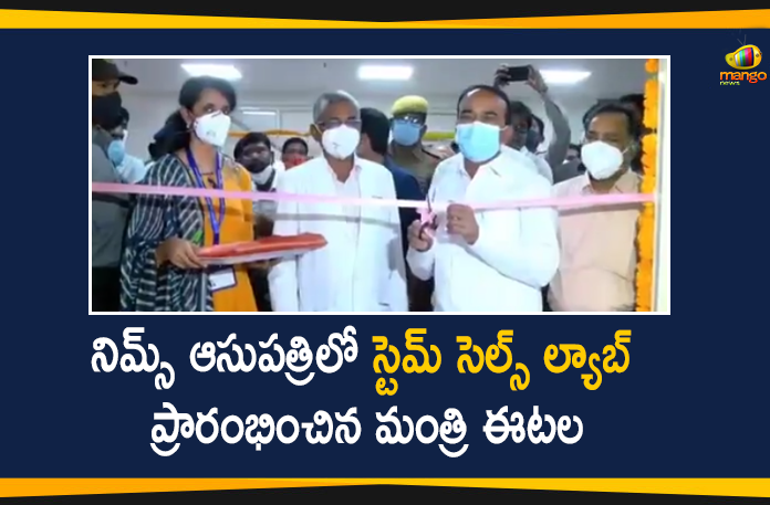 హైదరాబాద్ నగరంలోని నిమ్స్ ఆసుపత్రిలో తెలంగాణ రాష్ట్ర వైద్య ఆరోగ్య శాఖ మంత్రి ఈటల రాజేందర్ శుక్రవారం నాడు స్టెమ్ సెల్స్ ల్యాబ్ను ప్రారంభించారు. ఈ సందర్భంగా మంత్రి మాట్లాడుతూ, నిమ్స్ ఆసుపత్రిని తెలంగాణ రాష్ట్రంలోనే ఉన్నతమైన చికిత్స కేంద్రంగా తీర్చిదిద్దడంలో భాగంగా ఈ రోజు మాలిక్యులర్ డయాగ్నోస్టిక్ సెంటర్ ప్రారంభించామన్నారు. ఈ సెంటర్ రోజుకు 10 వేల టెస్టులు చేయగల సామర్థ్యం కలిగి ఉందని తెలిపారు. అలాగే నూతనంగా ప్రారంభించిన స్టెమ్ సెల్స్ ల్యాబ్ ద్వారా బ్లడ్ క్యాన్సర్తో బాధపడేవారికి అత్యున్నత ప్రమాణాలతో కూడిన సేవలు అందించబడతాయన్నారు.
