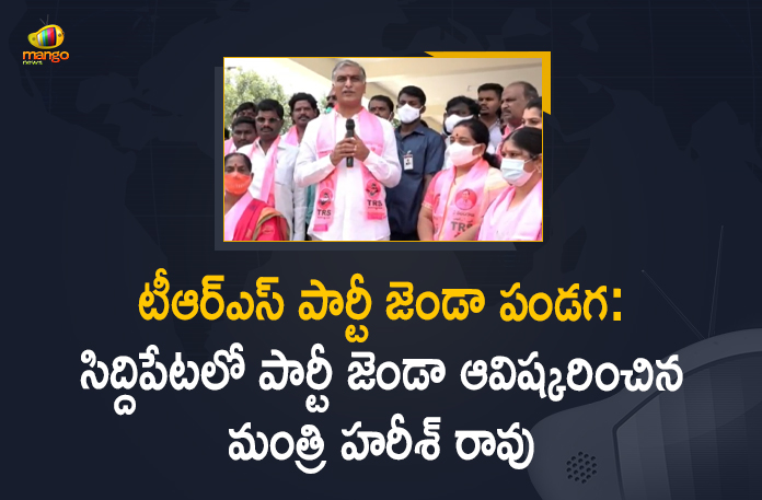 టీఆర్ఎస్ పార్టీ జెండా పండగ సందర్భంగా సిద్దిపేట జిల్లా కేంద్రంలోని తెలంగాణ భవన్ లో రాష్ట్ర ఆర్థిక శాఖ మంత్రి హరీశ్ రావు పార్టీ జెండాను ఆవిష్కరించారు. ఈ సందర్భంగా మంత్రి హరీశ్ రావు మాట్లాడుతూ, ఏప్రిల్ 27న కరోనా వల్ల పార్టీ ఆవిర్భావ దినోత్సవం జరుపుకొలేక పోయామన్నారు. రేపటి నుండి గ్రామ, పట్టణ, జిల్లా కమిటీలు పూర్తి చేయాలని పార్టీ నిర్ణయించిందని చెప్పారు. టీఆర్ఎస్ పార్టీ జల దృశ్యంలో పుట్టి అంచెలంచెలుగా ఎదిగి ఢిల్లీ దాకా పోయిందని చెప్పారు. ప్రతిపక్ష నాయకుల గురించి మాట్లాడుతూ, వారికి అధ్యక్ష పదవులు రావడం గులాబీ జెండా పుణ్యమేనని అన్నారు. వాళ్లు చేయాల్సింది పాదయాత్రలు కాదని, పెంచిన గ్యాస్, డీజిల్ ధరల పై ఢిల్లీ యాత్రలు చేయాలన్నారు.