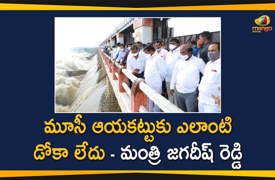 తెలంగాణ రాష్ట్రంలో భారీ వర్షాలు కురుస్తున్నాయి. ఈ నేపథ్యంలో మూసీ నదికి కూడా వరద నీరు భారీగా చేరుతుంది. ఈ నేపథ్యంలో రాష్ట్ర విద్యుత్ శాఖామంత్రి గుంటకండ్ల జగదీష్ రెడ్డి స్పందిస్తూ, మూసీ ఆయకట్టుకు ఎటువంటి పరిస్థితుల్లో డోకా ఉండబోదని స్పష్టం చేశారు. ఈ తెల్లవారుజామున 4 గంటల సమయంలో చరిత్రలో ముందెన్నడూ లేనిరీతిలో ఒక్కసారిగా వరద ఉధృతి తీవ్రం కావడంతో అప్పటికప్పుడు సూర్యపేట, నల్గొండ జిల్లా కలెక్టర్ల తోపాటు నీటిపారుదల అధికారులను మంత్రి అప్రమత్తం చేశారు. సూర్యపేట జిల్లా రత్నపురం వద్ద గండి పెట్టి నీటిని కిందికి వదలాలని అధికారులను ఆదేశించారు. అదే సమయంలో సోషల్ మీడియా ద్వారా ఆయకట్టు కింది ప్రజలను జాగ్రత్తగా ఉండాలి అంటూ విజ్ఞప్తి చేసారు. అయినా వరద ఉధృతి తగ్గకపోవడంతో శాసనమండలి సమావేశంలో ఉన్న ఆయన హుటాహుటిన మూసీ ఆయకట్టు మీదకు చేరుకుని అత్యవసర ద్వారాలతో పాటు పూర్తిగా తలుపులు తీయించి 1.75 లక్షల క్యూసెక్కుల నీటిని కిందికి వదలడంతో ఆయకట్టు రైతాంగం ఊపిరి పీల్చుకుంది.