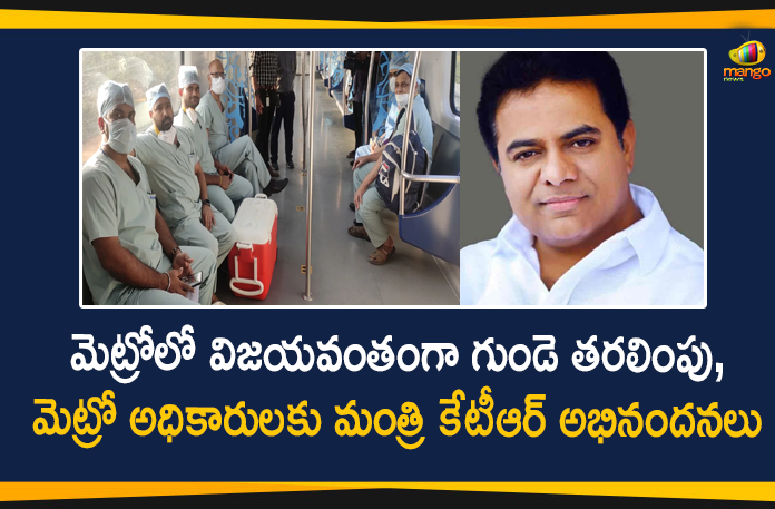 హైదరాబాద్ నగరంలో మంగళవారం నాడు గుండె మార్పిడి శస్త్రచికిత్స కోసం నాగోల్ మెట్రో స్టేషన్ నుంచి జూబ్లీహిల్స్ చెక్పోస్టు మెట్రో స్టేషన్ వరకు తొలిసారిగా మెట్రోరైలులో విజయవంతంగా గుండెను తరలించిన సంగతి తెలిసిందే. ఈ నేపథ్యంలో మెట్రో రైలులో గుండె తరలింపుపై మంత్రి కేటీఆర్ హర్షం వ్యక్తం చేశారు. ఎంతో హృదయపూర్వక చర్యగా అభివర్ణించారు. ప్రాణాలను కాపాడటానికి 21 కిలోమీటర్ల దూరంపాటు గుండె తరలింపు చేయడానికి ప్రత్యేక రైలును నడిపిన హైదరాబాద్ మెట్రో రైల్ ఎండీ ఎన్వీఎస్ రెడ్డి, ఎల్ అండ్ టీ మెట్రో ఎండీ కేవీబీ రెడ్డికి మంత్రి కేటీఆర్ అభినందనలు తెలిపారు. అలాగే అవయవ దానం కోసం ముందుకు వచ్చిన దాత నర్సీరెడ్డి కుటుంబానికి మంత్రి కేటీఆర్ కృతజ్ఞతలు తెలిపారు.
