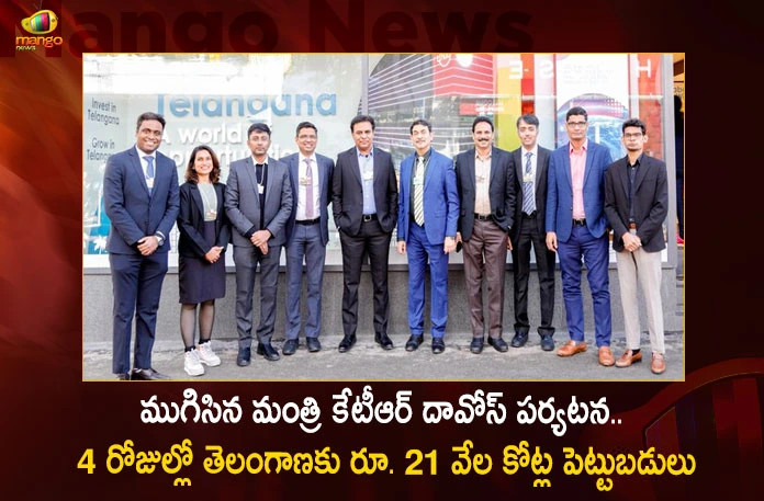 తెలంగాణకు పెట్టుబడులే లక్ష్యంగా స్విట్జర్లాండ్ లోని దావోస్ నగరంలో జరిగిన ప్రపంచ ఆర్థిక వేదిక సదస్సులో పాల్గొనేందుకు వెళ్లిన రాష్ట్ర ఐటీ, పరిశ్రమల శాఖ మంత్రి కేటీ రామారావు పర్యటన ముగిసింది. ఈ సందర్భంగా తన పర్యటన విజయవంతమైందని ఆయన ట్విట్టర్ వేదికగా పేర్కొన్నారు. ఇక ఈ పర్యటన సందర్భంగా రాష్ట్రానికి మొత్తం రూ. 21 వేల కోట్ల భారీ పెట్టుబడులు వచ్చినట్లు వెల్లడించారు. పర్యటనలో భాగంగా 4 రోజుల్లో మొత్తం 52 వాణిజ్య సమావేశాలు, 6 రౌండ్ టేబుల్ సమావేశాలు సహా మరో 2 ప్యానెల్ చర్చలు జరిగినట్లు మంత్రి కేటీఆర్ వివరించారు. వీటిలో సాఫ్ట్వేర్ దిగ్గజ సంస్థ మైక్రోసాఫ్ట్ రూ. 16 వేల కోట్ల పెట్టుబడితో హైదరాబాద్లో మరో 3 డేటా సెంటర్ల ఏర్పాటుకు ముందుకు రావడం, అలాక్స్ అడ్వాన్స్ మెటీరియల్స్ ప్రైవేట్ లిమిటెడ్ రూ.750 కోట్ల పెట్టుబడులకు ఒప్పందం చేసుకోవడం వంటివి ఉన్నాయి.