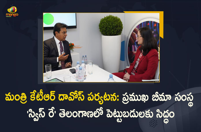 తెలంగాణలో మరో అంతర్జాతీయ సంస్థ పెట్టుబడులు పెట్టనుంది. ప్రపంచ ప్రఖ్యాత ఇన్సూరెన్స్ కంపెనీ ‘స్విస్ రే’ హైదరాబాద్లో కంపెనీని స్థాపించడానికి తన సంసిద్ధత తెలిపింది. ఈ మేరకు రాష్ట్ర ఐటీ, పరిశ్రమల శాఖ మంత్రి కేటీఆర్ తన ట్విట్టర్ ద్వారా వెల్లడించారు. నిన్నటి నుంచి మొదలైన దావోస్ వరల్డ్ ఎకనామిక్ ఫోరం సదస్సులో పాల్గొంటున్న కేటీఆర్ తెలంగాణలో పెట్టుబడులకు గల అవకాశాలను వివిధ కంపెనీలకు వివరిస్తున్నారు. దీంతో రాష్ట్రంలో పెట్టుబడులు పెట్టేందుకు పలు కంపెనీలు ఆసక్తి చూపిస్తున్నాయి. ఈ క్రమంలోనే స్విస్ రే కంపెనీ ఎండీతో మంత్రి కేటీఆర్ సమావేశమయ్యారు.