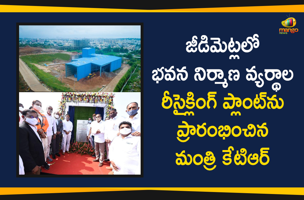 హైదరాబాద్ లోని జీడిమెట్లలో భవన నిర్మాణ వ్యర్థాల రీసైక్లింగ్ ప్లాంట్ను రాష్ట్ర ఐటీ, పురపాలక శాఖ మంత్రి కేటిఆర్, మరో మంత్రి మల్లారెడ్డితో కలిసి ప్రారంభించారు. ఈ సందర్భంగా మంత్రి కేటిఆర్ మాట్లాడుతూ, నగరంలో భవన నిర్మాణ వ్యర్థాలను ఎక్కడపడితే అక్కడ పడేస్తూ ప్రజలకు ఆటంకం కలిగించడమే కాకుండా, నగర అందాన్ని కూడా కూడా చెడగొట్టడం జరుగుతుందన్నారు. ఈ విధానానికి చెక్ పెట్టేందుకు జీహెచ్ఎంసీ చర్యలు చేపట్టిందని, రూ.10 కోట్లతో 500 టీపీడీ సామర్థ్యం కలిగిన కనస్ట్రక్షన్ అండ్ డిమాలిషింగ్ వెస్ట్ మేనేజ్మెంట్ ప్లాంట్ను జీడిమెట్లలో ఏర్పాటు చేసినట్టు తెలిపారు. అలాగే సంక్రాతి సమయానికి ఎల్బీనగర్ నియోజకవర్గంలోని పతుల్ గూడాలో మరో ప్లాంట్ కూడా ప్రారంభం కానుందని చెప్పారు.