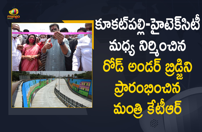 హైదరాబాద్ నగరంలో కూకట్పల్లి-హైటెక్సిటీ మధ్య నిర్మించిన రోడ్ అండర్ బ్రిడ్జి(ఆర్యూబీ)ని రాష్ట్ర ఐటీ, పరిశ్రమలు, మున్సిపల్ శాఖల మంత్రి కేటీఆర్ సోమవారం నాడు ప్రారంభించారు. హైటెక్ సిటీ రైల్వే స్టేషన్ వద్ద రూ.66.59 కోట్లతో దాదాపు 410 మీటర్ల పొడవు, 20.60 మీటర్ల వెడల్పుతో నిర్మించిన ఈ రోడ్ అండర్ బ్రిడ్జి(ఆర్యూబీ) ప్రారంభం కావడంతో తీవ్రమైన ట్రాఫిక్ రద్దీ ఉండే ఈ మార్గంలో వాహనదారులకు ఊరట కలగనుంది. ఈ కార్యక్రమంలో రాష్ట్ర కార్మిక శాఖ మంత్రి మల్లారెడ్డి, కూకట్పల్లి ఎమ్మెల్యే మాధవరం కృష్ణారావు, మేయర్ గద్వాల్ విజయలక్ష్మితో పాటుగా పలువురు నాయకులు, అధికారులు పాల్గొన్నారు. హైదరాబాద్ నగరంలో సిగ్నల్ ఫ్రీ రహదారుల కోసం ఎస్ఆర్డీపీ కింద ఇప్పటికే ప్రభుత్వం పలు ప్రాజెక్టులు చేపట్టింది. తాజాగా ఈ ఆర్యూబీ ప్రారంభంతో ఆ మార్గంగుండా వెళ్లే ప్రజలకు, ముఖ్యంగా ఐటీ ఉద్యోగులకు ట్రాఫిక్ ఇబ్బందులు తప్పనున్నాయి.