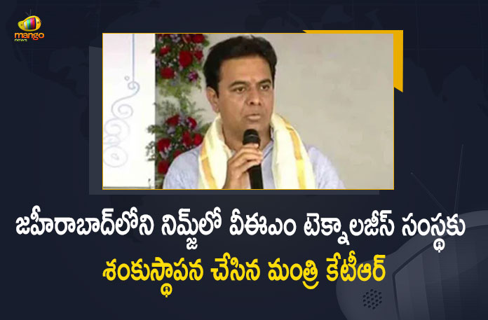 తెలంగాణ రాష్ట్ర ఐటీ, పరిశ్రమలు శాఖ మంత్రి కేటీఆర్ ఈరోజు జహీరాబాద్ పర్యటనలో పాల్గొన్నారు. పర్యటనలో భాగంగా ఆయన పలు అభివృద్ధి పనులకు శంకుస్థాపనలు, ప్రారంభోత్సవాలు చేశారు. ఈ క్రమంలో నిమ్జ్లో వీఈఎం టెక్నాలజీస్ సంస్థకు భూమిపూజ చేశారు. నిమ్జ్లో ఏర్పాటు చేస్తున్న తొలి పరిశ్రమ ఇదే కావడం గమనార్హం. సుమారు 511 ఎకరాల్లో రూ. 1,000 కోట్ల భారీ పెట్టుబడితో దీనిని నిర్మిస్తున్నారు. అనంతరం జహీరాబాద్ పట్టణంలోని బాగారెడ్డి స్టేడియంలో నిర్వహించిన బహిరంగ సభలో మంత్రి కేటీఆర్ మాట్లాడుతూ.. తెలంగాణలో రూ. 1,000 కోట్ల భారీ పెట్టుబడితో వీఈఎం టెక్నాలజీస్ ఏర్పాటు చేయడానికి ముందుకు రావడం సంతోషమని, ఈ పరిశ్రమ ఏర్పాటుతో దాదాపు రెండు వేల మందికి ఉపాధి లభించనుందని పేర్కొన్నారు.