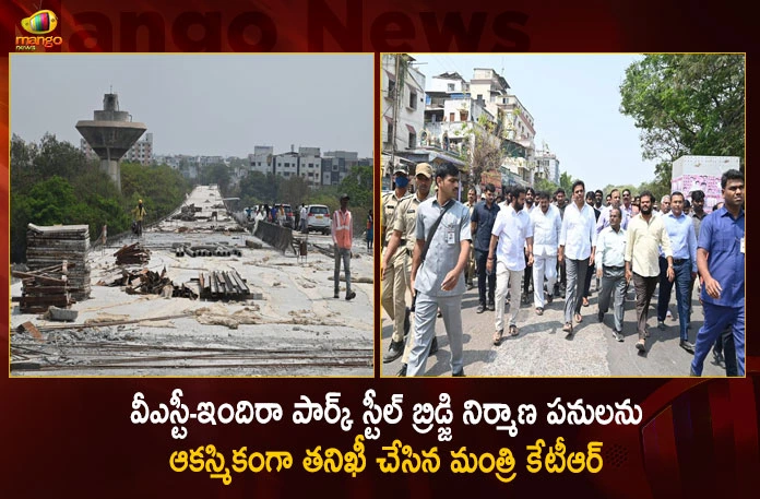 తెలంగాణ రాష్ట్ర ఐటీ, పరిశ్రమలు, మున్సిపల్ శాఖ మంత్రి కేటీఆర్ శనివారం సెంట్రల్ హైదరాబాద్ లోని వీఎస్టీ-ఇందిరా పార్క్ వరకు నిర్మిస్తున్న స్టీల్ బ్రిడ్జి నిర్మాణ పనులతో పాటు ఇతర పనులను ఆకస్మికంగా తనిఖీ చేశారు. ఈ తనిఖీ సందర్భంగా స్టీల్ బ్రిడ్జ్ పనుల పురోగతిని జీహెచ్ఎంసీ ఇంజనీరింగ్ సిబ్బందిని మంత్రి కేటీఆర్ అడిగి తెలుసుకుని, అధికారులకు పలు కీలక సూచనలు చేశారు. స్టీల్ బ్రిడ్జ్ పనులు తుదిదశకు చేరుకుంటున్న నేపథ్యంలో మూడు నెలలలోగా బ్రిడ్జి నిర్మాణం పూర్తి చేయాలని మంత్రి కేటీఆర్ ఆదేశాలు ఇచ్చారు. అందుకు అవసరమైన ట్రాఫిక్ మళ్లింపుపై నగర ట్రాఫిక్ పోలీస్ విభాగంతో సమన్వయం చేసుకోవాలని సూచించారు.