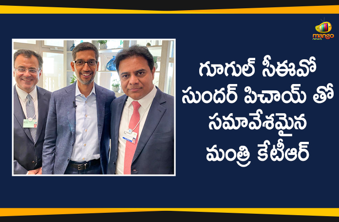 దావోస్ లో జరుగుతున్న వరల్డ్ ఎకనామిక్ ఫోరం సదస్సులో రెండవ రోజున తెలంగాణ ఐటీ మరియు పరిశ్రమల శాఖ మంత్రి కే. తారక రామారావు పలు ప్రపంచ ప్రఖ్యాత కంపెనీల సీనియర్ ప్రతినిధులతో సమావేశమయ్యారు. తెలంగాణ పెవిలియన్ లో జరిగిన ఈ సమావేశాల్లో పలు కంపెనీల సీఈవోలు, గ్రూప్ చైర్మన్లు పాల్గొన్నారు. అలాగే అక్కడ జరిగిన ఒక బిజినెస్ మీటింగ్ లో గూగుల్ మరియు ఆల్ఫాబెట్ సీఈవో సుందర్ పిచాయ్ తో మంత్రి కేటీఆర్ సమావేశం అయ్యారు. ఈ సందర్భంగా హైదరాబాద్ నగరంలో గూగుల్ కార్యకలాపాలతో పాటు, గూగుల్ భవిష్యత్తు విస్తరణ పైన ఈ సందర్భంగా చర్చించారు.