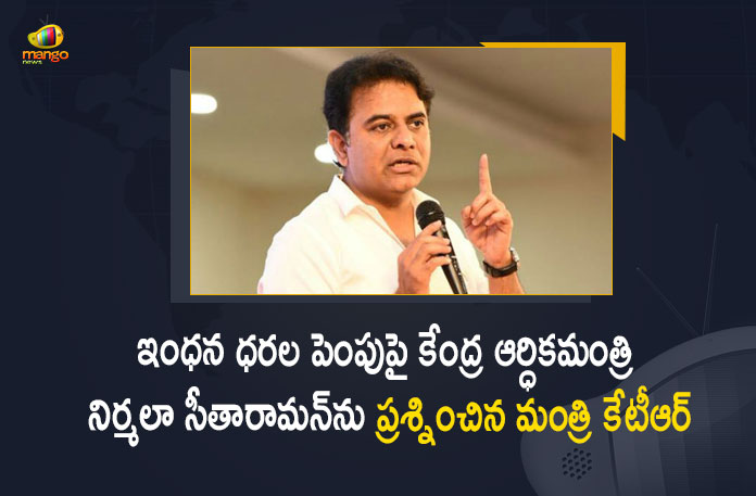 Minister KTR Questions Finance Minister Nirmala Sitharaman on Hike of Crude Oil Prices, Minister KTR Questions Finance Minister Nirmala Sitharaman, Minister KTR Questions Finance Minister on Hike of Crude Oil Prices, Hike of Crude Oil Prices, Finance Minister Nirmala Sitharaman, Finance Minister, Nirmala Sitharaman, Crude Oil Prices Hike, Crude Oil Prices Hike Latest News, Crude Oil Prices Hike Latest Updates, Telangana Minister KTR, KTR, Minister KTR, KT Rama Rao, Minister of Municipal Administration and Urban Development of Telangana, KT Rama Rao Minister of Municipal Administration and Urban Development of Telangana, KT Rama Rao Information Technology Minister, Mango News, Mango News Telugu,