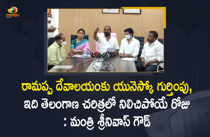 రామప్ప దేవాలయంకు యునెస్కో గుర్తింపు, ఇది తెలంగాణ చరిత్రలో నిలిచిపోయే రోజు : మంత్రి శ్రీనివాస్ గౌడ్
